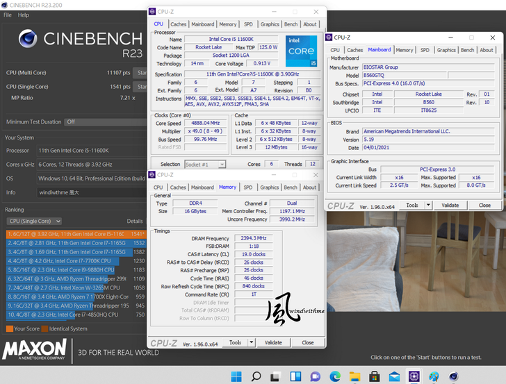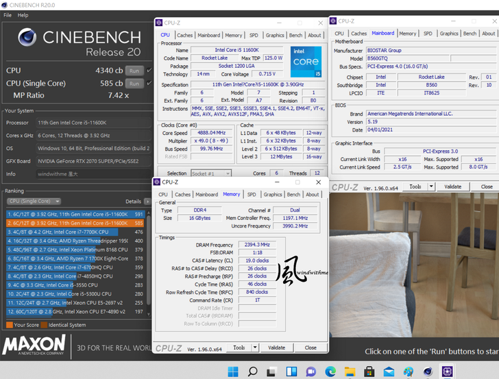 便運用手邊Intel 11代平台來測試,主機板採用BIOSTAR B560GTQ,