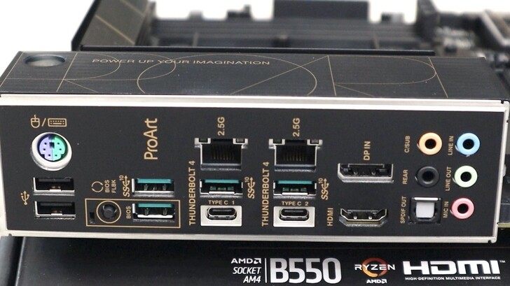 第三條 PCIe x16 則是經過 B550 的 PCIe Gen3 x4,並且與 Thunderbolt 4 共享頻寬,需要擇一使用。毫無猶豫,當然是選擇 Thunderbolt 4!