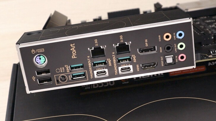 難能可貴的是,華碩率先在 AMD 平台使用上 Thunderbolt 4。B550 Creator應該是第一張,X570 Creator 應該就是第二張,目前仍沒有看到其他板廠推出 AMD 平台類似的產品。這非常重要,因為過往如果要挑 Thunderbolt 主機板,第一直覺就是先從 Intel 一萬元以上的主機板開始看。這次 B550 Creator 的 Thunderbolt 雖然會被卡在頻寬有限,但是可以在 $8,000 內用到 Thunderbolt,實在是太感恩了。而對大多數消費者來說,或許可以加上內建 WiFi 的功能,在定位上才不會差高階款太多,使用上也更加方便。