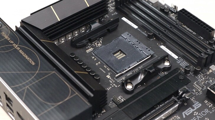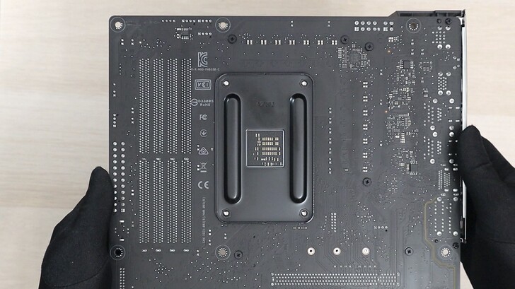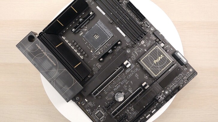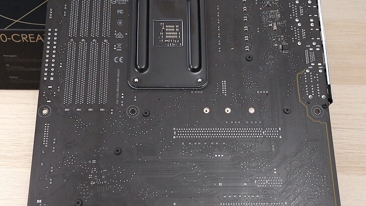 主機板背面也是全黑的設計,沒有 ROG 那樣的彩蛋,看起來也非常舒適。B550 Creator 沒有強化的金屬背板,畢竟價格也不貴,算是相當合理。但希望價格較高的創作者系列,未來可以納入這個裝備。