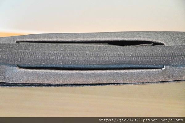 保護層內裡使用防震記憶棉,摸起來舒適有彈性,可以讓筆電在保護層內受到完美的守護,