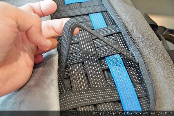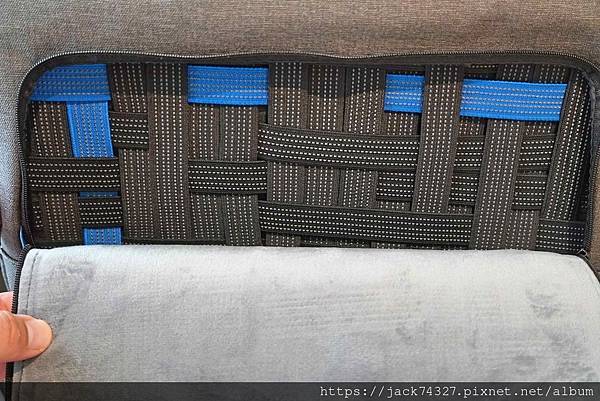 「JTLEGEND 13" AMOS 巧納筆電內袋」這一款電腦包最厲害也讓人驚豔的,莫過於前方收納袋的『高彈力防滑帶』