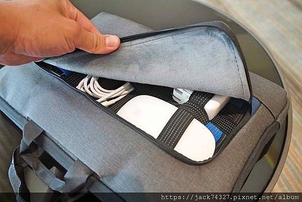 但是裡面只有一個夾層,如果外出要使用到無線滑鼠+電源線,就會全部都擠在一起,