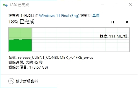 傳輸頻寬速度瞬間最高以及平均坐落在110MB/s 差不多是在U3 Gen1的水平