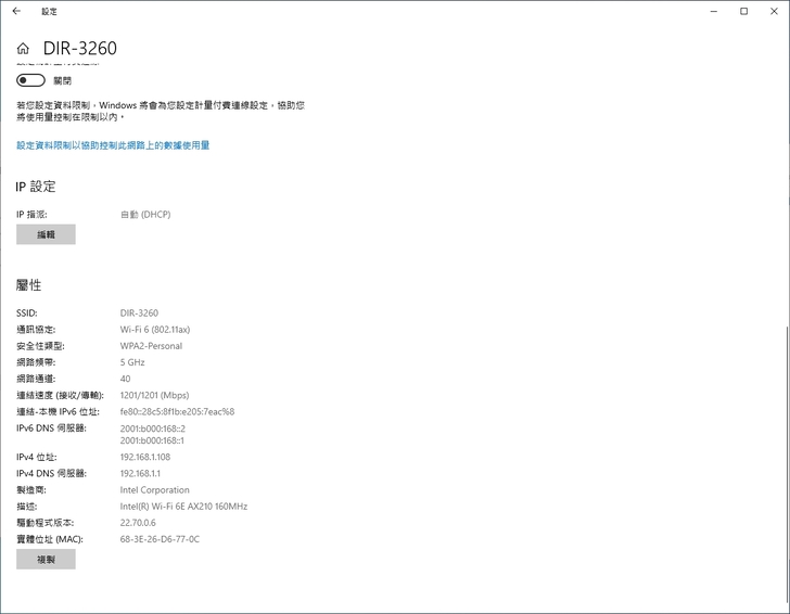 透過筆電AX200網卡跟NAS區域網路進行檔案交換傳輸,網卡執行速度 1.2Gbps WIFI6模式進行傳輸