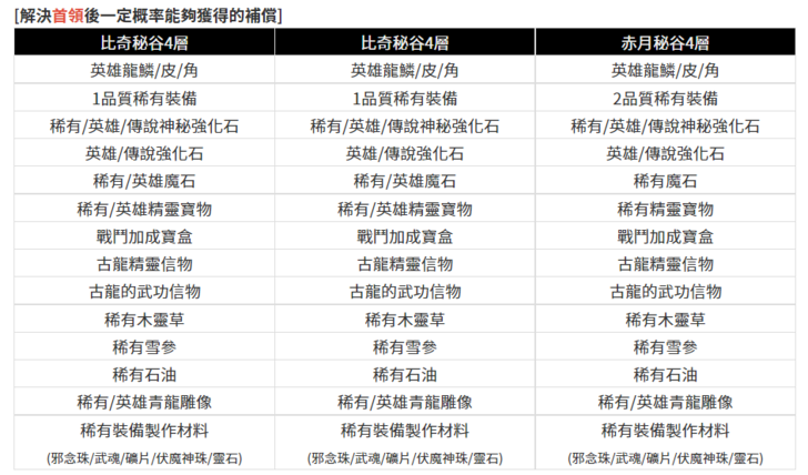 限定在比奇秘谷/蛇谷秘谷/赤月秘谷第四層才會出現的指定怪獸