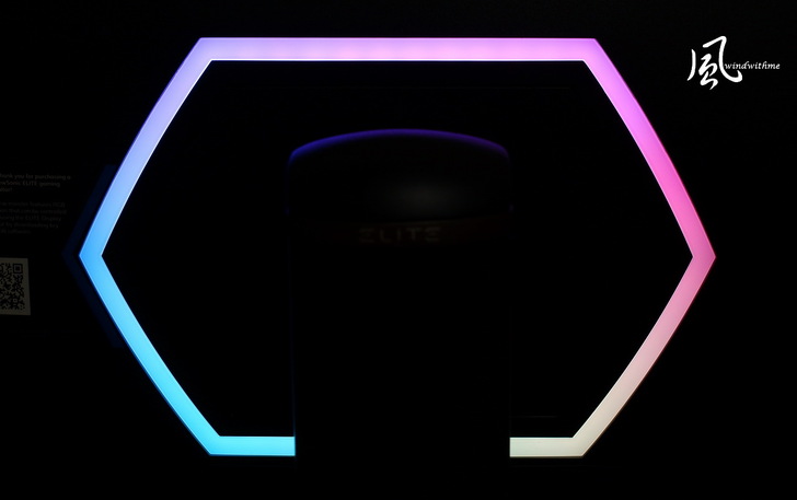 左右兩邊白色ELITE RGB燈條,燈號照射下來會落在下方桌面區域,