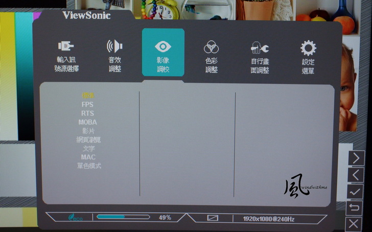 影像調校提供標準、FPS、RTS、MOBA、影片、網頁瀏覽、文字、