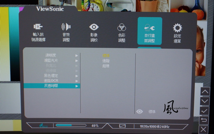 OSD選單以電競定位來說相當豐富,對於創作繪圖或影片需求也提供充足的調整選項。