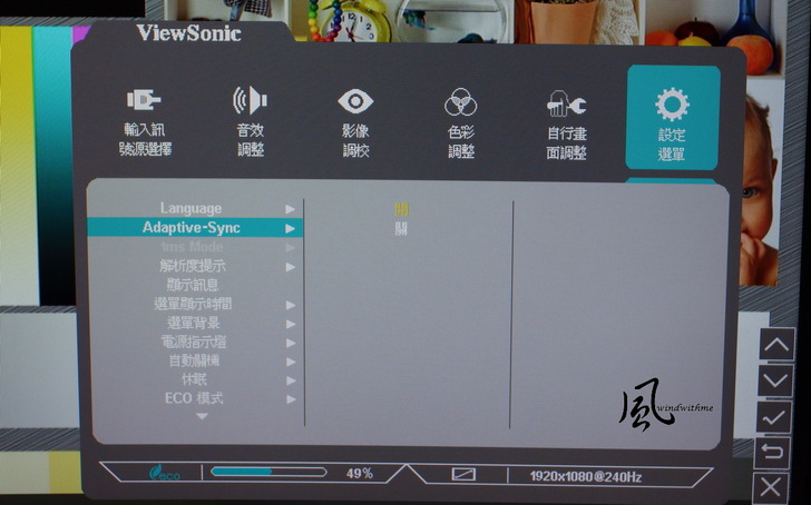 設定選單共有2頁,第一頁分別是Language、Adaptive-Sync、