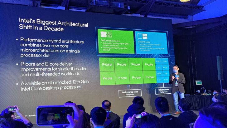 第12代Intel Core處理器為什麼會這麼的強大呢 ? 因為第12代Intel Core處理器具備了多工效能混合架構 , 有著最高效能的效能核心(P-core)和專為可擴充多執行緒工作負載效能所設計的效率核心(E-core) , 兩種混合架構核心 , 創造出地表最強處理器 , 讓你我的科技生活又往前邁進巨大的一步.