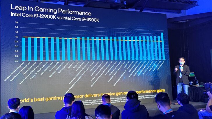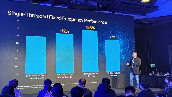再平均功率下P-Core核心較前一代Cypress-Cove有19%平均效能提升 , 即便是強調功耗的E-Core在定頻設定下 , 單核心效能與10代的Comet-Lake-S單核心效能相當 , 這樣超強的效能讓我們的創作與遊戲得到最佳的功效 .