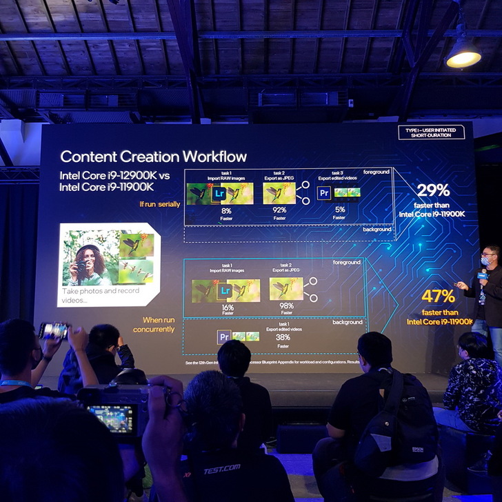 ▼ 混合了影片編輯、轉檔、相片編輯的狀況下,i9-12900K 可以比 i9-11900K 提升近 47% 的效能。