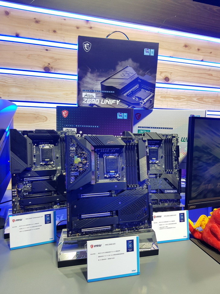 台灣的主機板廠商 最強悍的 Z690晶片組 主機板,包含 ASRock、ASUS、BIOSTAR、GIGABYTE、MSI,現場都有實機展示體驗。