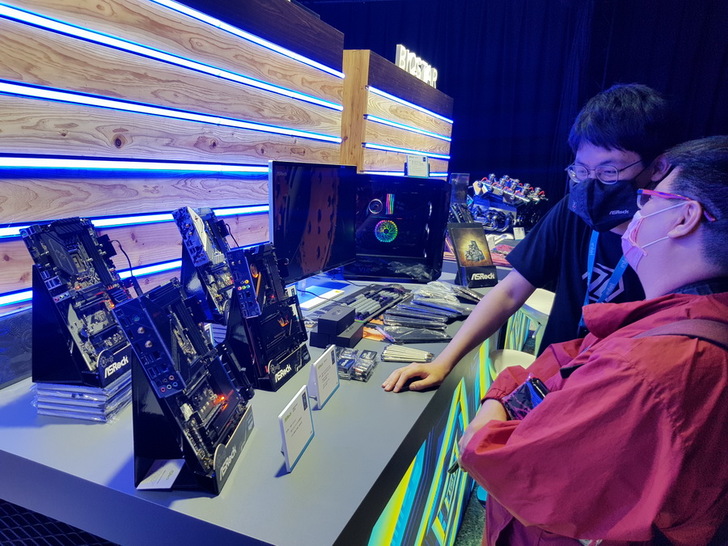 ▼ 會場的攤位滿滿的各大主機板廠商跟電腦主機廠商,眾多網友馬上就上前想瞭解 Intel 12代處理器 執行程式及遊戲方面的效能。