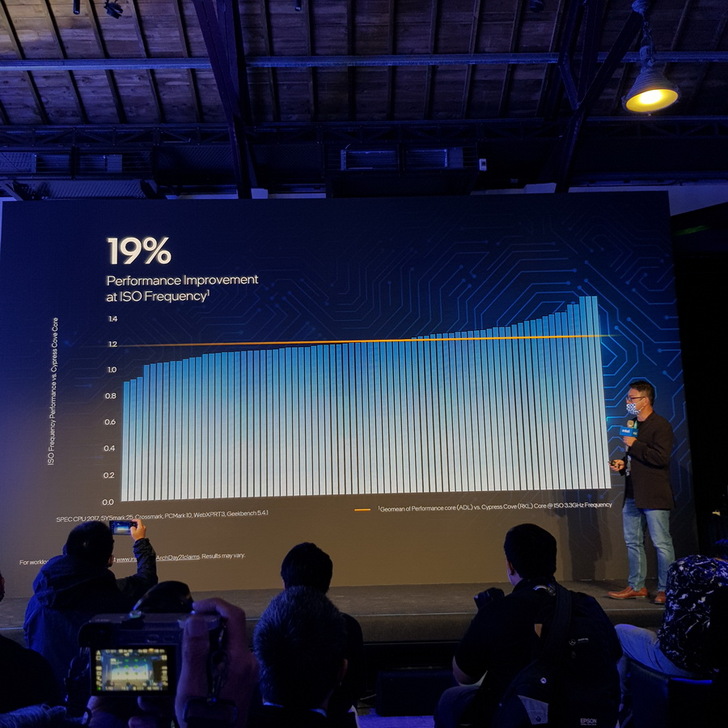 ▼ 平均功率下 P-Core 較前一代 Rocket-Lake 使用的 Cypress Cove 核心有 19% 的平均效能提升。