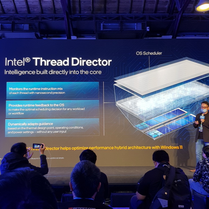 ▼ P-Core 與 E-Core 的工作分配部分,Intel 推出 Intel Thread Director 設計,透過與 Windows 11 做了最佳化的調整。