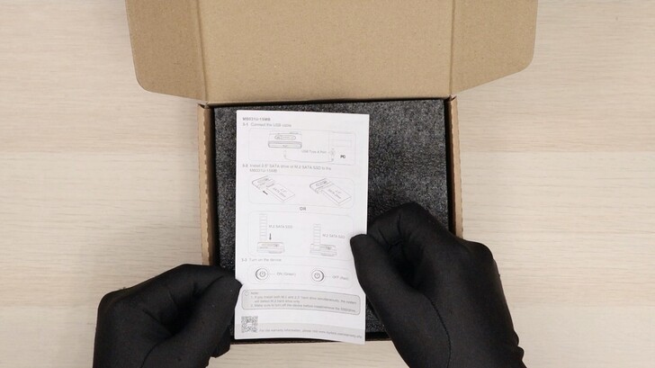 打開盒裝後,首先看到說明書,以及保護的黑色緩衝材料。