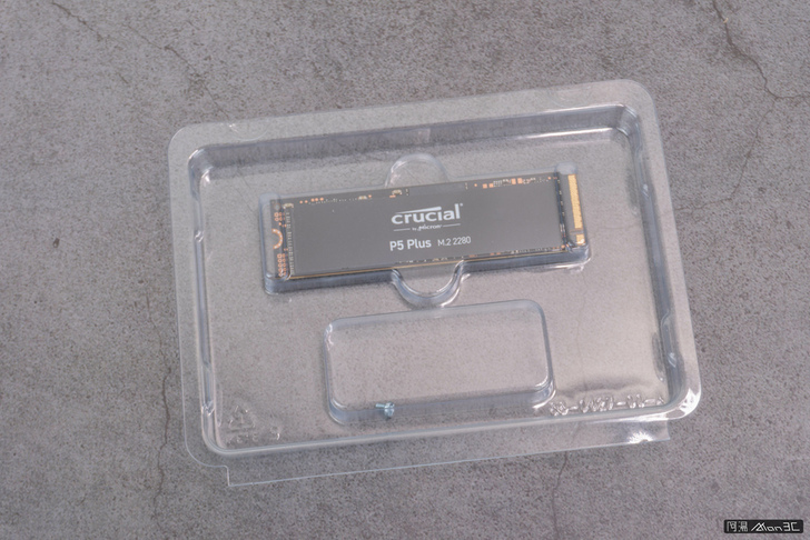 打開後,可看到 P5 Plus SSD 本體以及附上的 M.2 螺絲。也是美光老傳統了,一顆螺絲看似渺小不重要,但當你要幫筆電加裝 SSD 時,你會很感謝美光有附上這顆螺絲。我已經裝過太多筆電 M.2 槽沒付上螺絲的,還好那時我選的是美光 MX500,沒有螺絲的煩惱 XD
