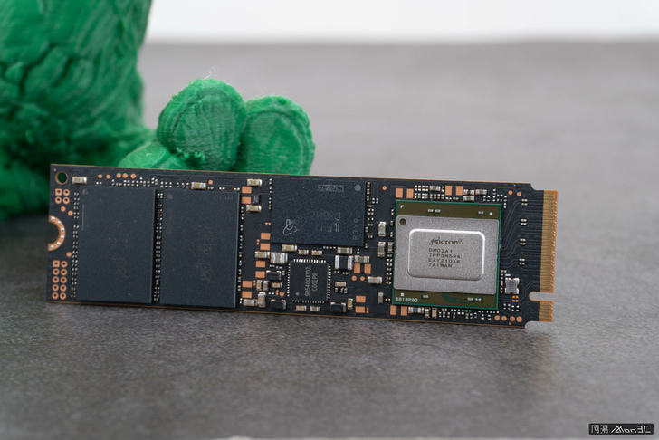 撕開貼紙,首先映入眼簾的是美光自家研發的主控,編號 DM02A1,貌似是在台灣封裝。