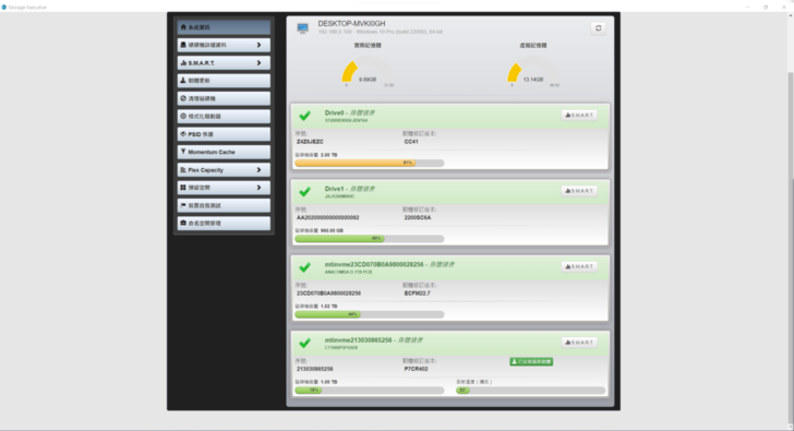另外美光也有提供一款工具軟體 Crucial Storage Executive,可以用來監控 SSD 狀態、韌體升級、Secure Erase 等,有用過美光產品的應該對此都蠻熟悉的。