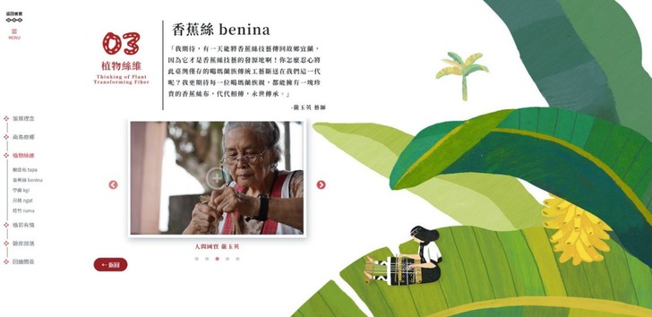 頑石國際表示「太平洋的風:島嶼部落」線上展共分四大單元,在『南島原鄉』單元,藉由語言特性以及構樹的DNA研究,說明臺灣是全球南島語系的原鄉;『植物絲維』單元中,詳細介紹原住民族生活用品中常利用的植物素材,例如:構樹、香蕉絲、苧麻、月桃、桂竹..等,同時也詳細記錄原住民族工藝家對於傳統技藝的傳承與用心。