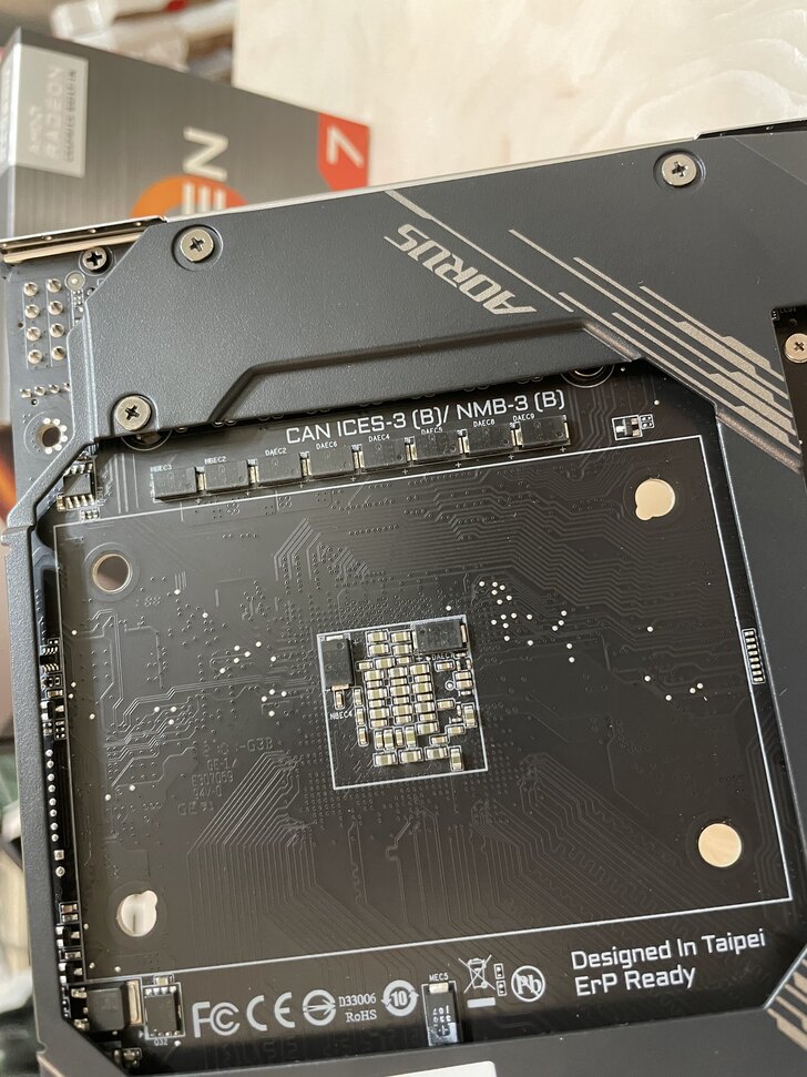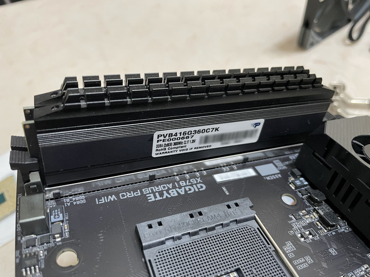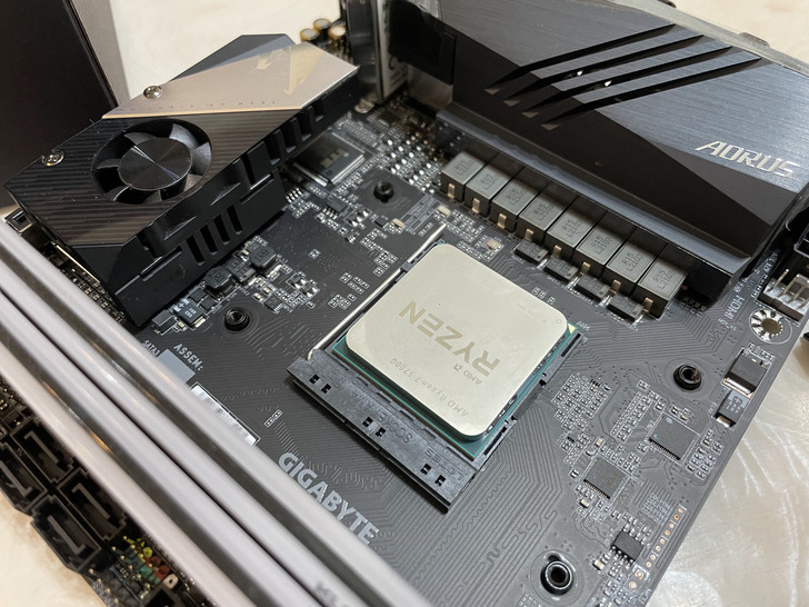 這年頭只要是中高階的主機板都可以看到散熱鰭片加高違建的現象, 而 5700G 原廠所附的風扇與 X570I AORUS PRO WIFI 看似會干涉到, 但其實是不會的.