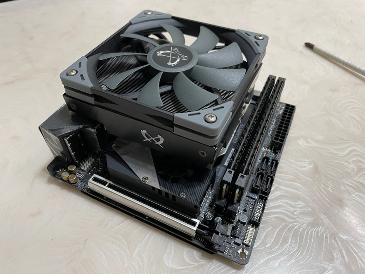 5700G 的散熱器基本上原廠附的能應付日常生活所需, 若有靜音、不干涉高記憶體或是想要打造成迷你小電腦的玩家朋友也可以自己來做更換, 照片中的散熱器為鐮刀大手裏劍3.