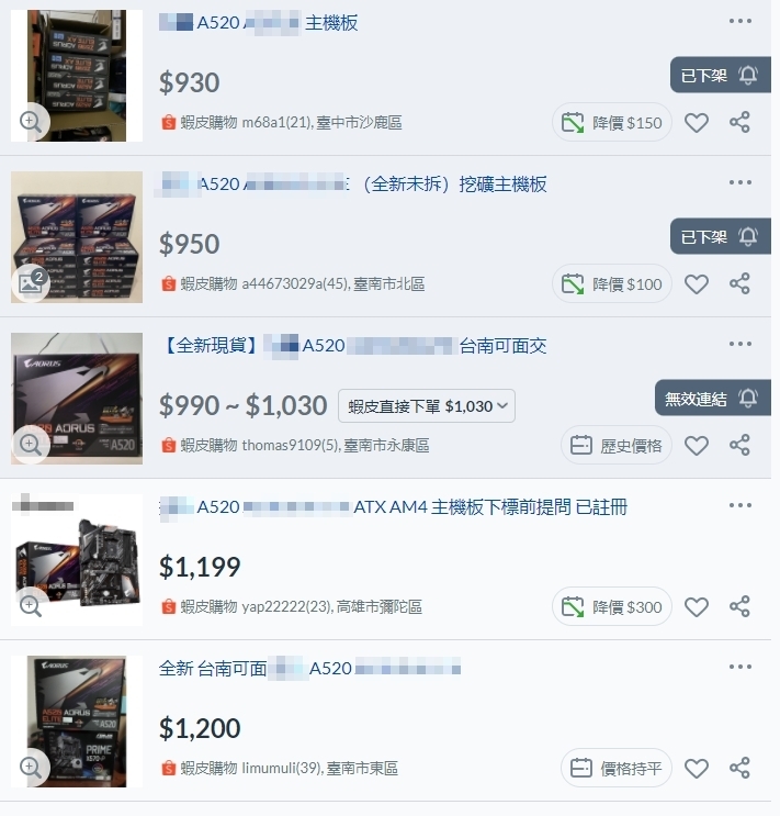 畫面上多了一個 P850GM, 主要是礦老闆希望幫忙處理, 於是就以超低 500元價格入手. (U=NTD$9,000 / MB=NTD1,800 / PSU=NTD500)