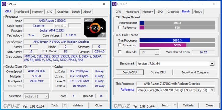 前面有提到若 5700G 跟同級的 i7-10700 有內顯的優勢, 而在此項測試中性能也是勝過於 Core i7-10700.