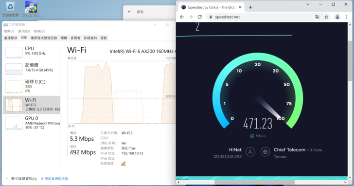 在網路部分 X570I AORUS PRO WIFI 都是使用 Intel 晶片, 無線網路使用的方案也是最穩定的 WIFI6 AX200, 下載測試也都可以頂到家用申請網速的上限.