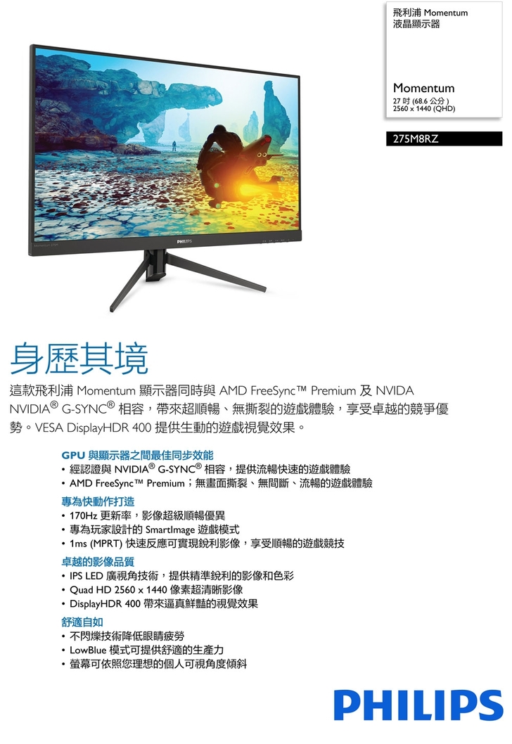 這是我打算用來作為太座的聖誕節禮物 雖然有些人覺得送3C產品是不是很不浪漫 可我覺得非常實際實用 而且我也用的到...(搞不好這才是主要目的) 考量PHILIPS 27型 275M8RZ主要強調順暢的遊戲視覺效果以及畫面快速反應 所以我想同時用在追劇跟遊戲應該挺合適的(而且我桌子最大就只能放27吋了XD) 在大人看完劇休息的時候我就能玩一下遊戲(夾縫中求生存) 以我個人來說覺得還不錯 飛利浦也算大牌子 大家覺得呢? 讚 收藏 快速回應 引言回應 共 4 則回應 1 樓 · 出去玩 · 發表於 2021-12-22 11:48 · 檢舉 這台可以到170Hz目前網路上大概賣一萬三 感覺CP值也還OK 讚 引言回應 2 樓 · rocky · 發表於 2021-12-22 14:48 · 檢舉 我的預算大概就是這樣 所以才對這台感興趣 讚 引言回應 3 樓 · rocky · 發表於 2021-12-23 14:54 · 檢舉 to黃重銘 個人是覺得CP不錯看了心動所以才選這台 讚 引言回應 4 樓 · Lionli · 發表於 2021-12-24 12:41 · 檢舉 我覺得挺不錯的 太座的聖誕節禮物真好~ 叫她一起來玩遊戲吧XD 讓太座玩煮過頭之類的哈哈 讚 引言回應