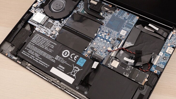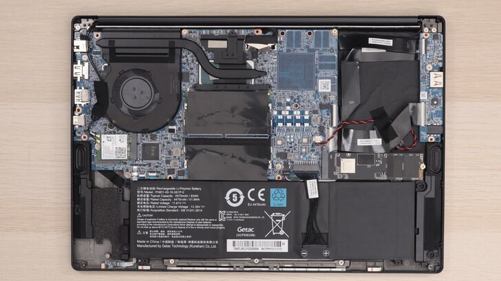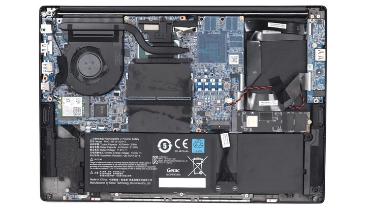 記憶體規格為 16GB,看起來與同類型筆電差不多,那你就小看它了。大多這類輕薄筆電都是將記憶體焊在主機板上,沒有任何升級空間。或是兩萬元 15 吋筆電,又或是一些入門的電競筆電,他們也是一條焊死,只提供一條擴充。XENIA 14 作為一台重量低於一公斤的筆電,居然完完整整地提供了兩條 SODIMM 可以安裝,哇~我拆開機身的時候真的是嚇了一跳。