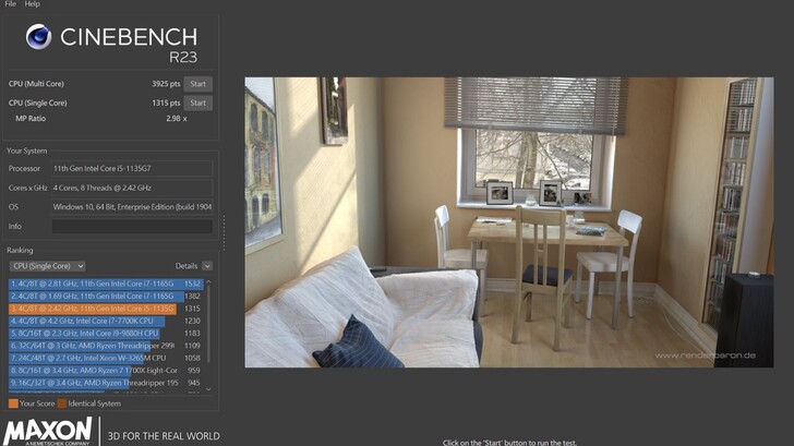 在 Office Mode 設定中,Cinebench R23 也有 3925 pts。