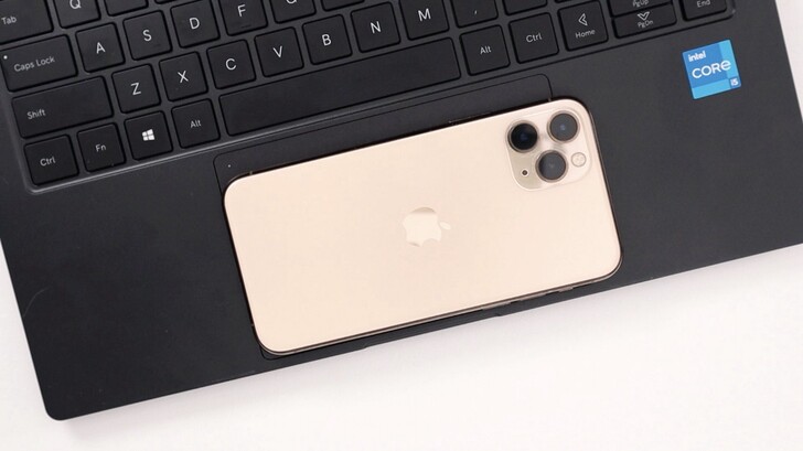 觸控板也是超~極~大~你看,畫面中用 iPhone 11 Pro 當參照物就可以到有多誇張,Windows 筆電很少做到這麼大的,有的輕薄筆電可能還只有他的一半不到呢!