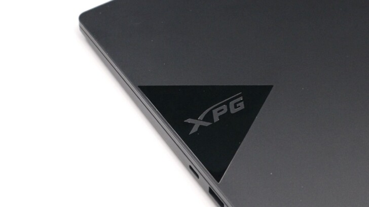 A 件上面跟 15 吋一樣有三角形的鏡面 XPG Logo,我認真覺得 XPG 除了做口香糖,可以考慮跟多利多茲合作。這個三角形的鏡面,就是各位獨一無二的指紋辨識收集區,雖然跟 A 件霧面形成明顯識別,但平常要維持乾淨真的太難了。