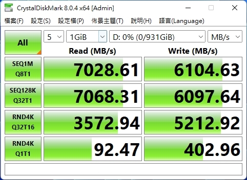 RDNA4KQ1T1讀取92MB/s寫入402MB/s