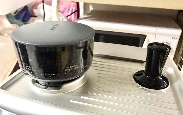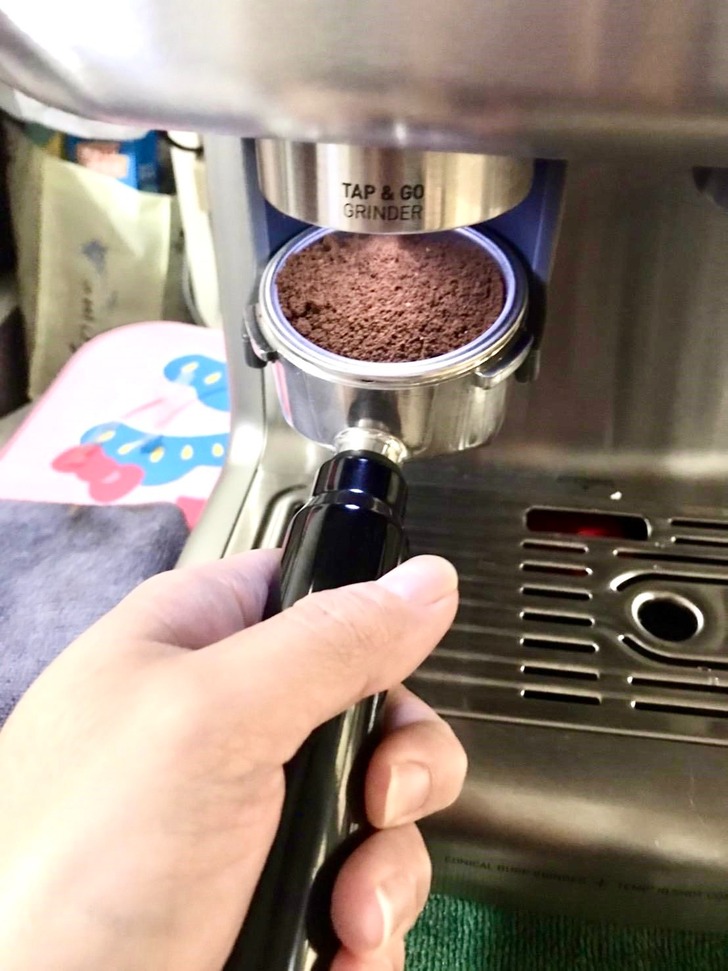 手把直接卡進去往下壓就會開始磨豆了 XD