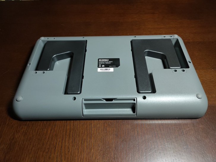 ▲背面可開始看到EMS002設計巧思了,螢幕架,顧名思義,要把螢幕架起來,而EMS002腳架是可收納式。