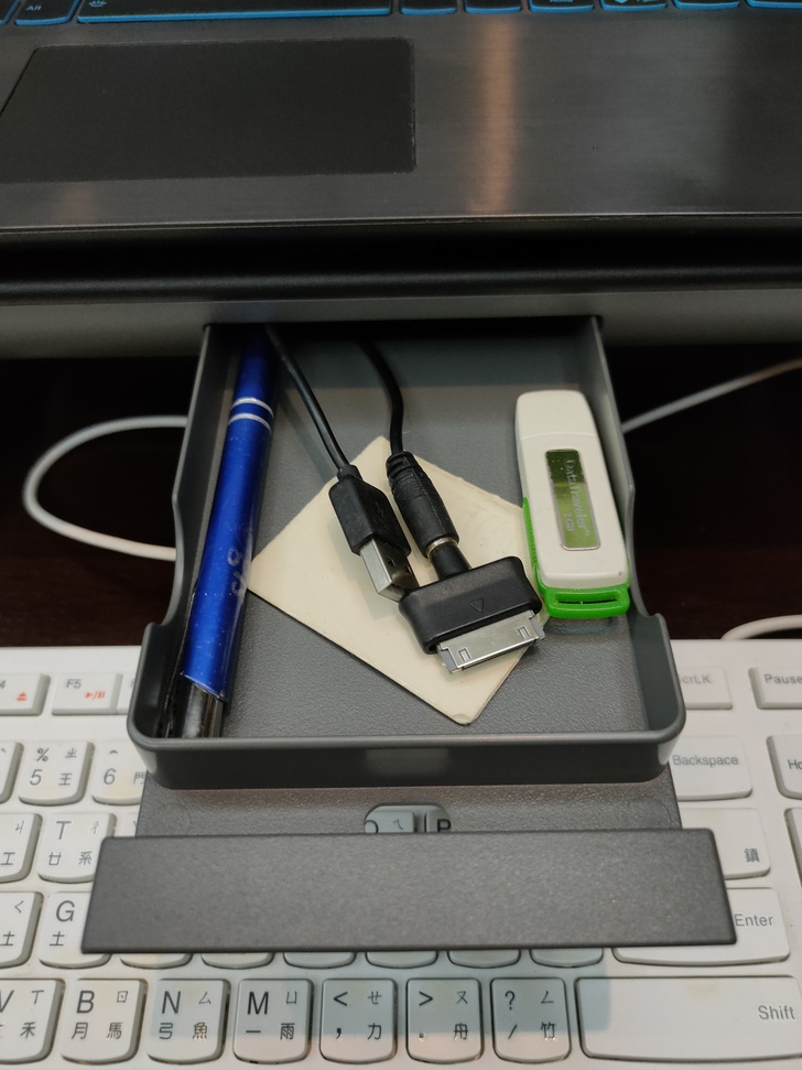 ▲前方抽屜其實空間還不算太小,放入常用的充電線、隨身碟、筆、MEMO紙等,都尚有空間,實用度高。