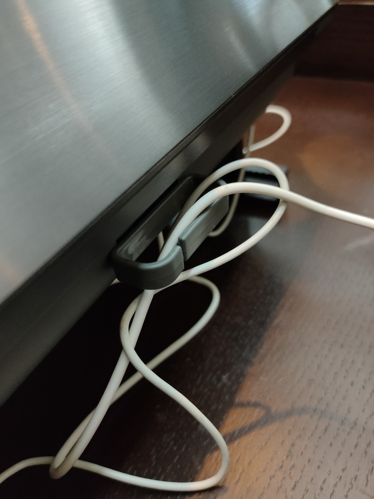 ▲後方的整線器,可讓週邊線材固定在一處,亦具有降低桌面雜亂度的效果。