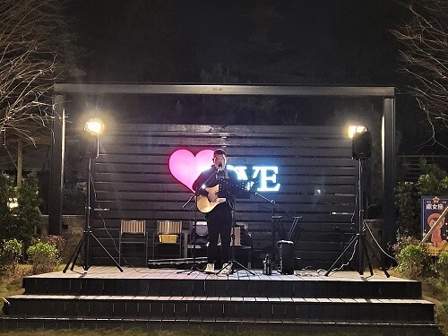 餐廳主棟有三層樓的位置,一樓有正對著駐唱舞台的搖滾區,