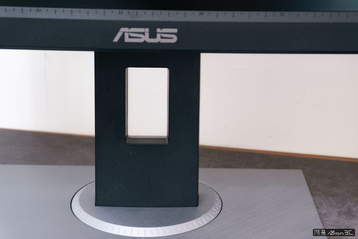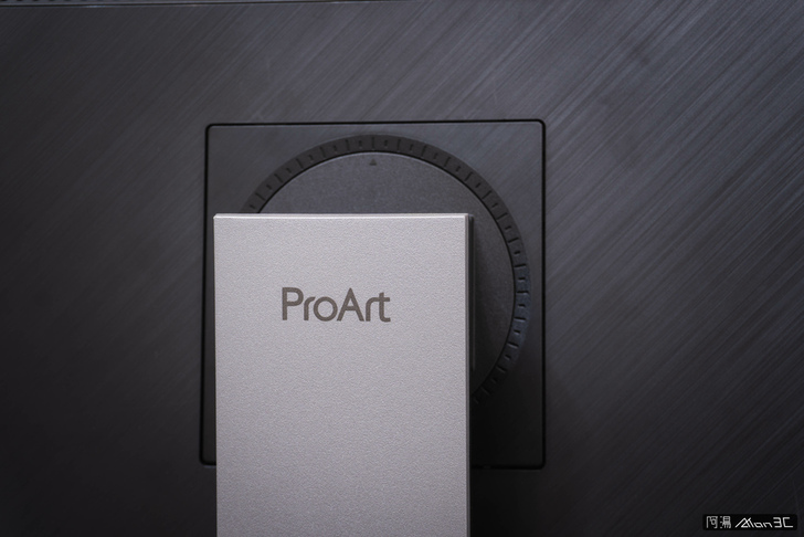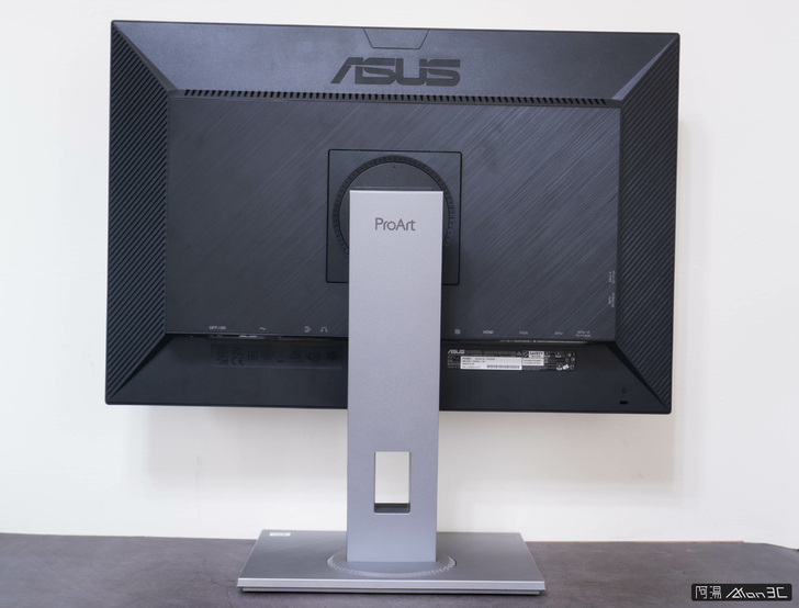 背面維持了正面方正的造型,有趣的是背面螢幕架上的 Logo 是唯二可以發現 ProArt Logo 的地方。畢竟是 ProArt 品牌中較入門的產品線,或許因為如此,大多的 Logo 還是以 ASUS 為主。