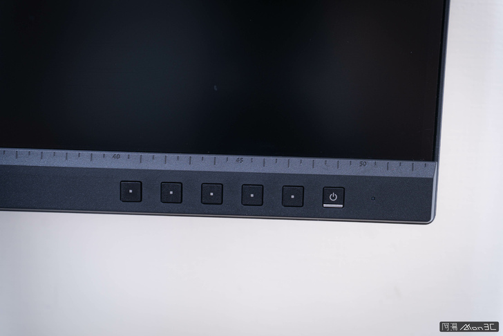 右下角有著螢幕的控制鈕,另外也可以在這裡看到 PA248QV 很特別的刻度設計,能夠方便設計師丈量尺寸。