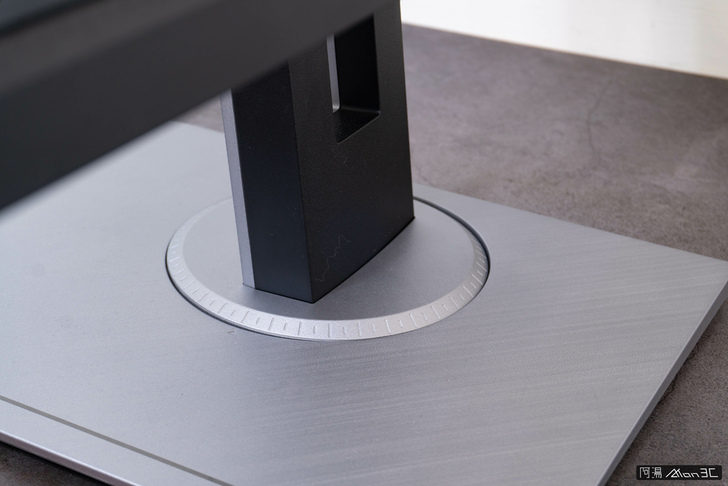 螢幕架底部有個理線孔,這設計有些類似我公司使用的 Dell 直立螢幕。