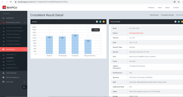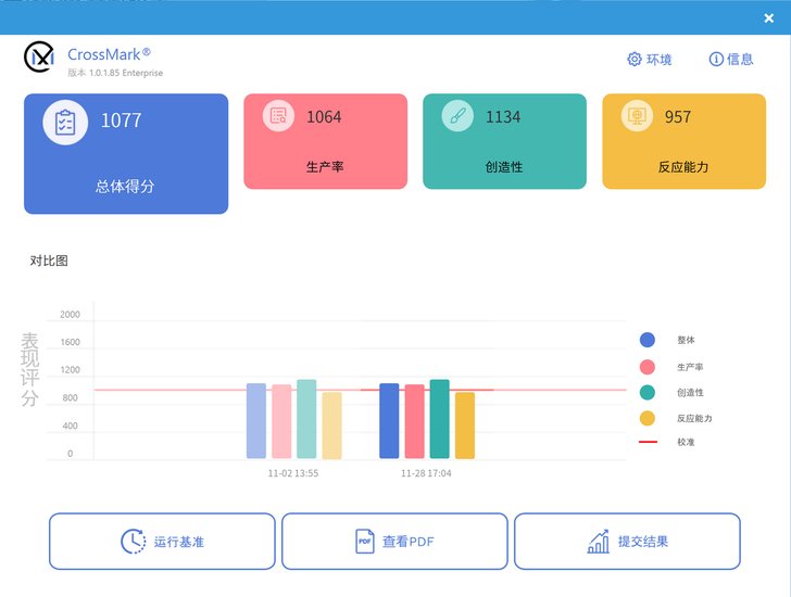 以上可以看出CrossMark會依每個硬體配置、規格或時脈進行測試,