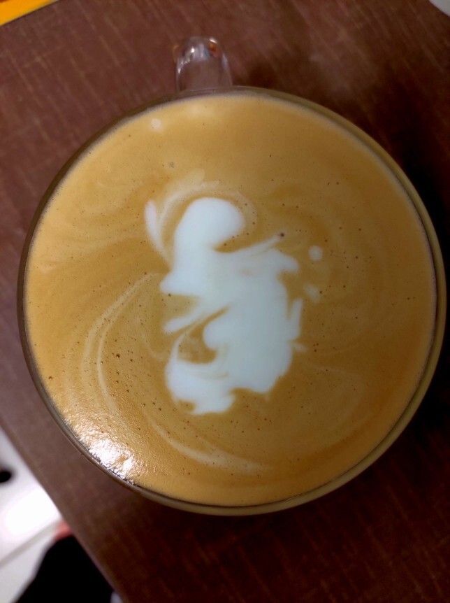 學會原理跟看完影片做功課後,當然就要實戰演練一番囉!從完全糊成一團的拿鐵,一直進化到能拉出一點奶泡,雖然原本想拉個愛心,結果不小心做出了一杯恐龍,但拿鐵味道真的不錯,對新手入門來說操作上很簡單易懂。
