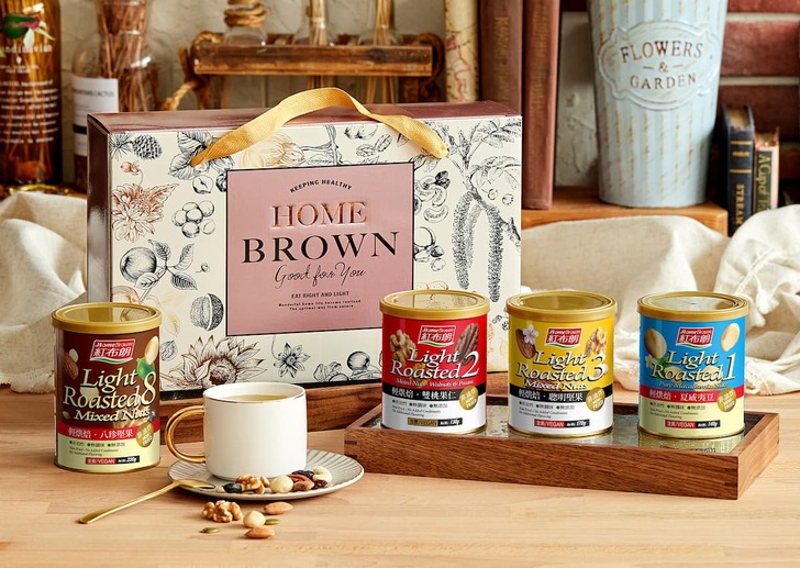 堅果是各年齡層都喜愛的零嘴,有不飽和脂肪酸以及多種的營養成分鞏固民眾的健康需求,紅布朗表示:堅果採用鐵罐包裝貫徹愛護地球的初衷,避免堅果光害與受潮,熱賣商品香蔥腰果採用產銷履歷的三星蔥研磨而成,保留甜味卻不嗆辣,蔥味香濃,馬告腰果以烏來山胡椒研磨而成,風味獨特,帶有薑味、淡雅的檸檬氣味與香茅尾韻,清脆香甜,目前推出新口味薑黃堅果,一上市回購率極高,全系列輕烘焙、非油炸、無防腐劑,符合新健康概念的伴手禮選擇。