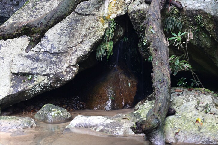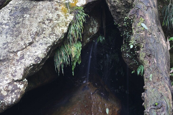 後來回家在大螢幕上才發現,原來這個細流前面還有一個完美的蜘蛛網,當下在現場完全沒留意到這個蜘蛛網,同行的友人也都沒發現留意到。而且照片中,細流幾乎剛好與蜘蛛網中心重疊,看起來就像是蜘蛛隨著細流結網的故事。是這幾組拍攝中,額外感動的地方。相機真的是我們肉眼的延伸,幫助我們看到一些平常沒注意到的細節。