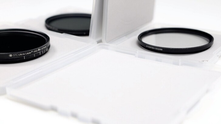 STC 每個濾鏡都有單獨的盒子保護,盒子內上下兩側都有海綿,可以夾著固定住濾鏡。其中 VND 濾鏡本身較厚,保護盒也特別大。隨盒裝都有一片擦拭布,像是出去拍瀑布或遇到下雨,經常要擦拭前鏡片的水痕、水滴,擦拭布一定要記得帶。
